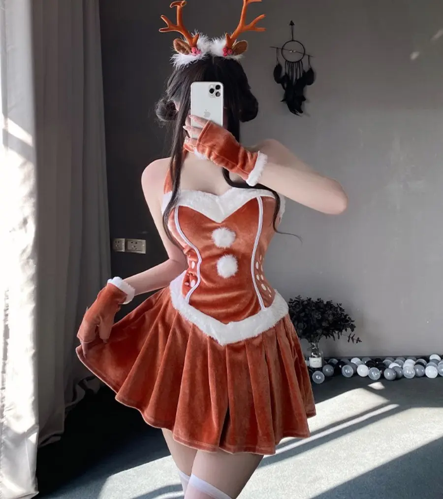 Get ready to sleigh the holiday parties with our “Santa’s Sexy Reindeer” dress! This little number is perfect for when you want to be on Santa’s naughty AND nice list. Made from 100% polyester, it clings in the right places and leaves just enough to the imagination. The halter neckline whispers “I’ve been a good girl,” while the open back purrs “but not too good.” Slip into this costume and transform into the most enchanting reindeer in the room. Ideal for a range of body types, this flirty frock is your ticket to festive flirtation!